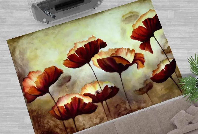 抽象的な花柄プリントラグ、花愛好家のためのモダンなデザイン