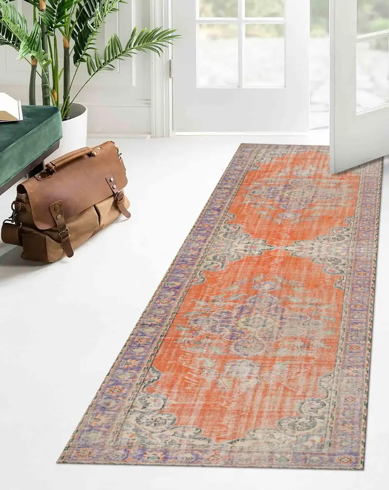 ヴィンテージトルコ花柄メダリオンプリントラグ、落ち着いた色あせたデザイン