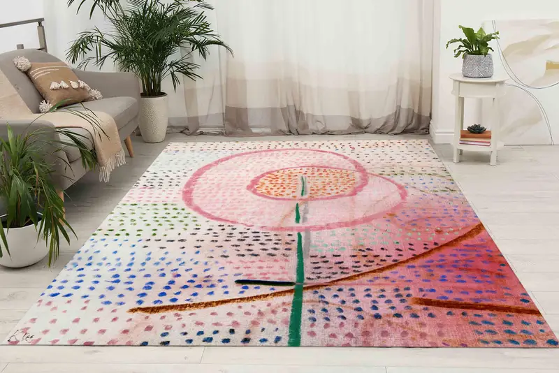 開花したスカンジナビアの抽象的なミニマルプリントラグ、モダンアート装飾