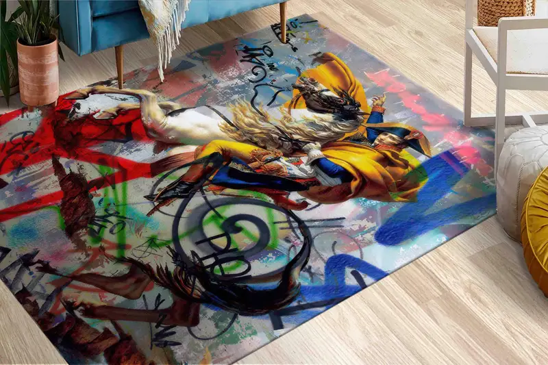 バンクシーアートとナポレオンモチーフの落書き風プリントラグ