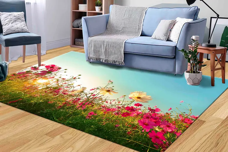 ピンクの花柄プリントラグ:ご自宅に春の花を