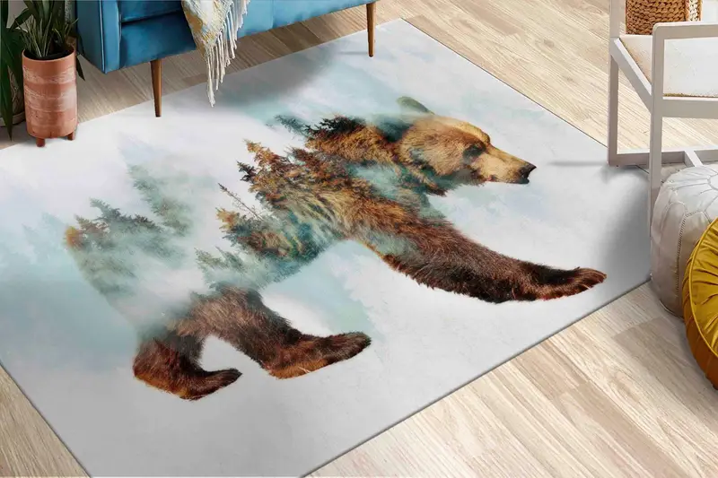 クマの抽象的な森のプリント ラグ、トレンディな子供部屋の装飾、ロフトの雰囲気