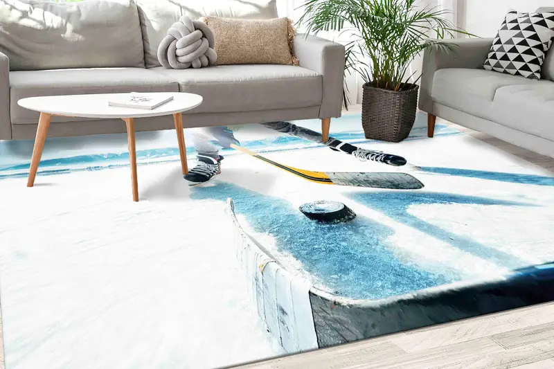 スポーツマンケイブ用ダイナミックアイスホッケーパターンプリントラグ