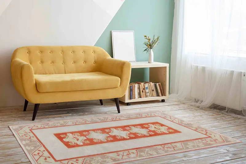 オレンジ & ベージュ ヴィンテージ トルコ プリ...