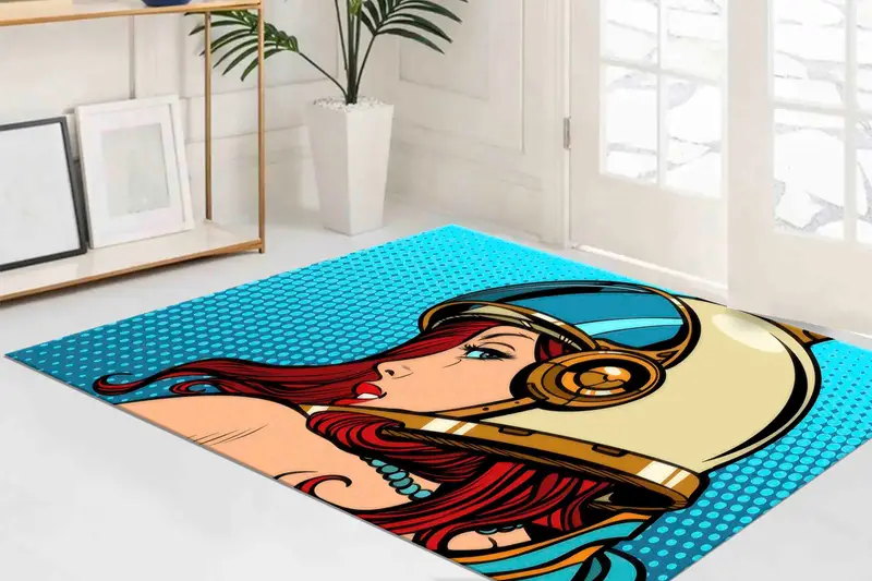 宇宙飛行士女性ポップアートプリントラグ、モダンアートホームデコレーション