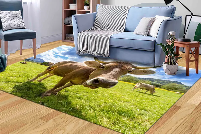 牛柄ファームハウスラグ、面白い動物デザイン、ソフトな質感