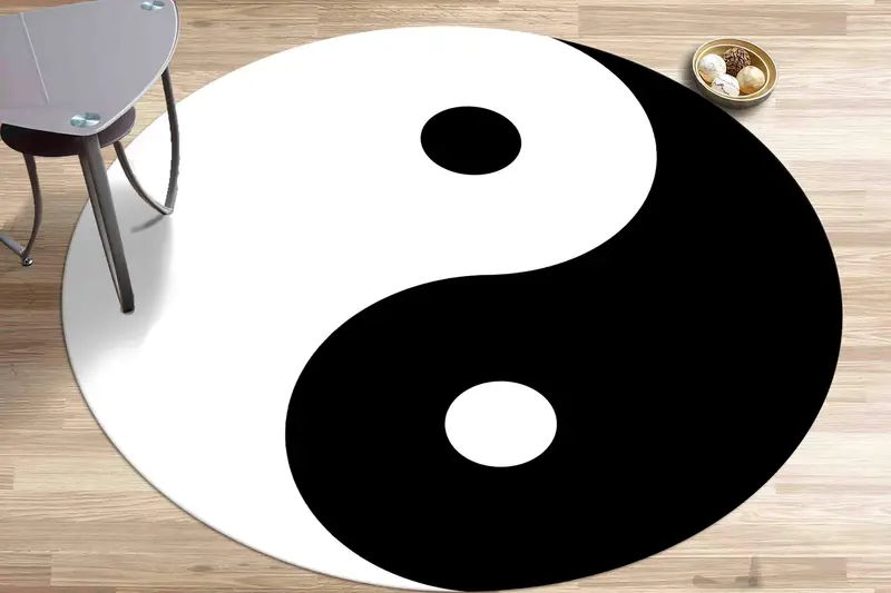 陰陽シンボル白黒ラウンドプリントラグ