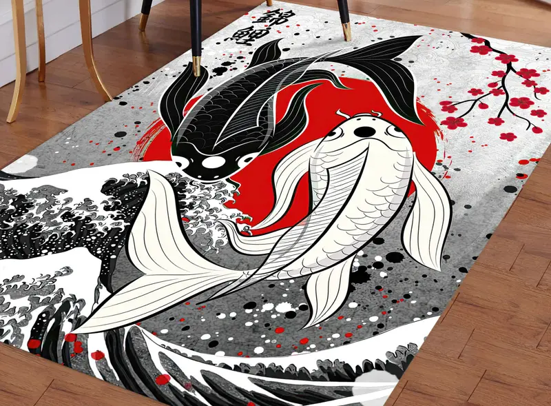 アニメの魚モチーフのプリントラグ: トレンディな空間のためのモダンな動物デザイン