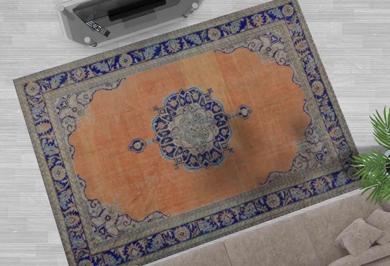 ネイビー ブルー メダリオン ヴィンテージ トルコ プリント ラグ エスニック パターン