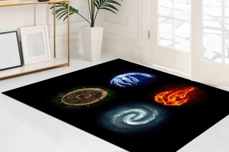ブラックのモダンな保育園プリントラグ: 地、水、火、空気のデザイン