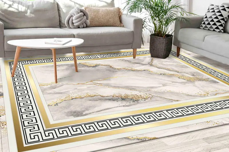 ゴールド抽象大理石プリントラグ: 豪華な大理石デザイン