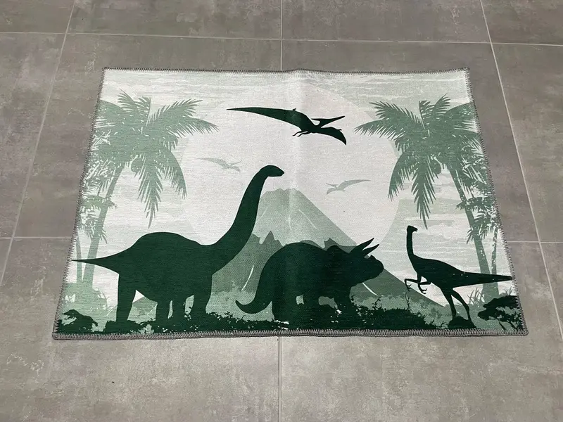 緑の恐竜プリントラグ、子供部屋用、柔らかくて丈夫