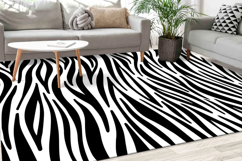 黒と白のゼブラ柄の敷物、モダンな農家の装飾