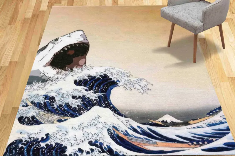 ウェーブアブストラクト日本製プリントラグ - ミニマリストモダンデザイン