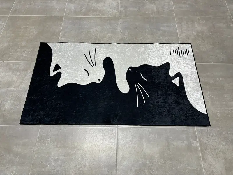 モダンな猫のシルエット プリント ラグ: 抽象的な...
