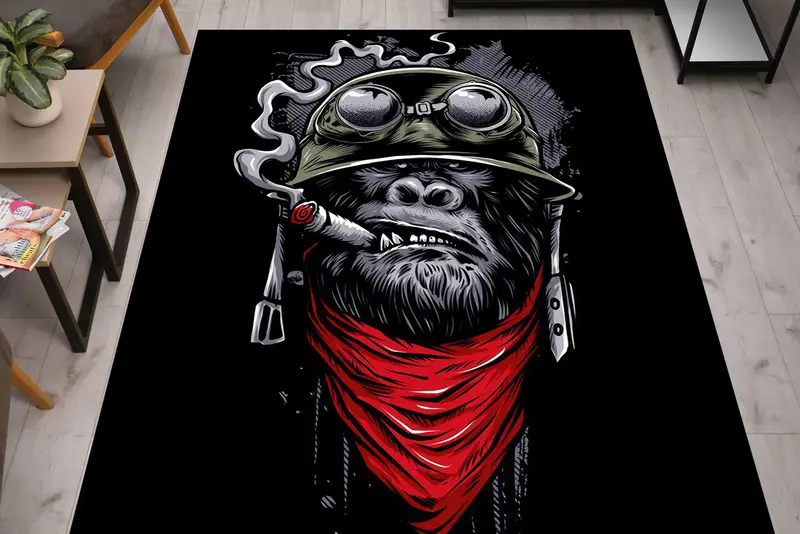 チンパンジープリントラグ:男の洞窟や男の子の部屋のモダンな装飾