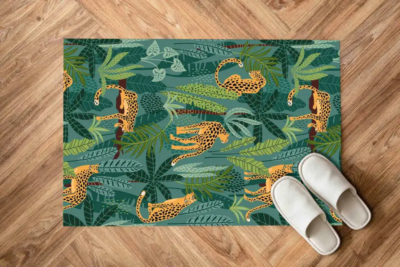 グリーン ボタニカル タイガー プリント ラグ、ボヘミアン シック アニマル ラグ