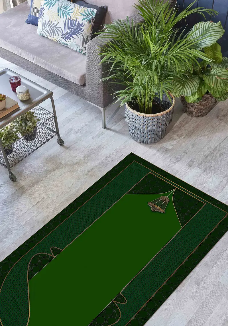 グリーン & ゴールド プリント ラグ: 礼拝用の高級祈りマット