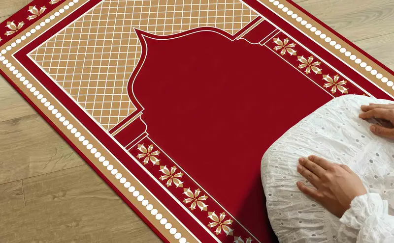 スピリチュアルな礼拝用のレッドとベージュの花柄プリント祈り敷物