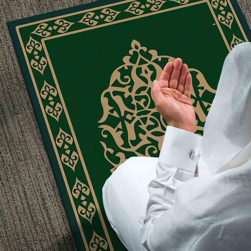 宗教礼拝用グリーン & ベージュ プリント 祈り敷...