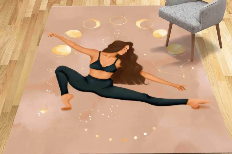 Moonlit Boho プリント ラグ: モダン、穏やか、ヨガ ルームの必需品