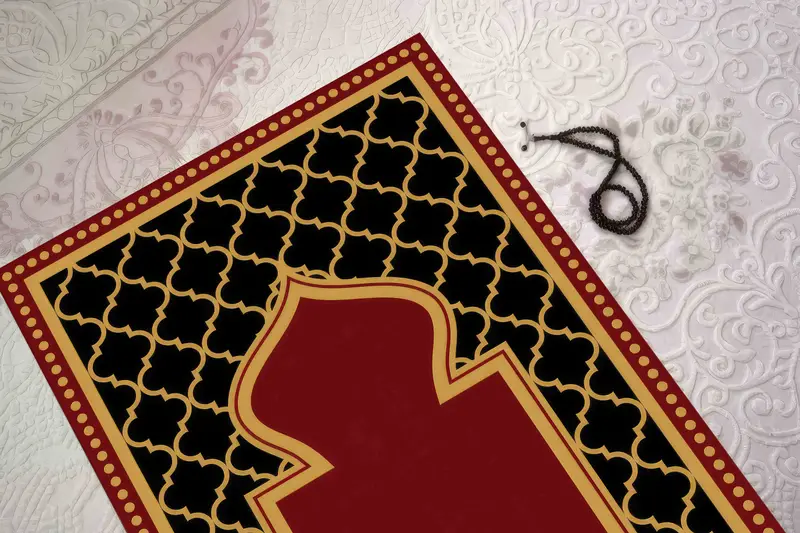 精神的な礼拝のための赤と黄色のプリントの祈りの敷物