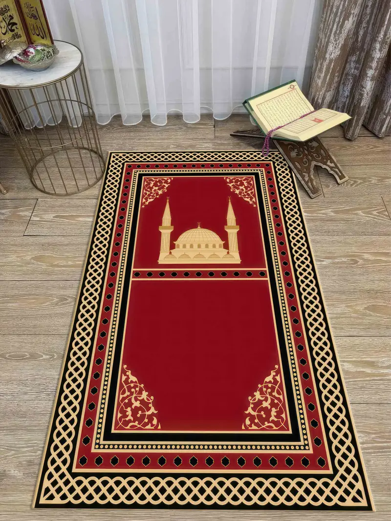 精神的な礼拝のための赤と黄色のプリントの祈りの敷物