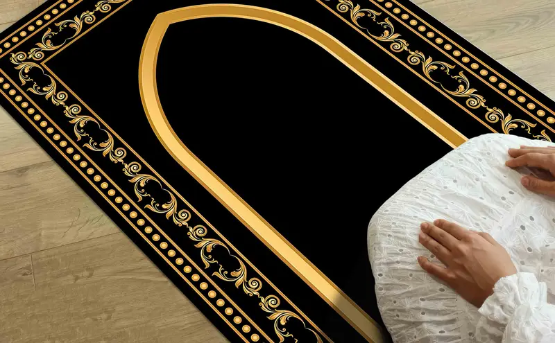 ゴールド & ブラック プリント 祈りの敷物: 豪華な宗教礼拝