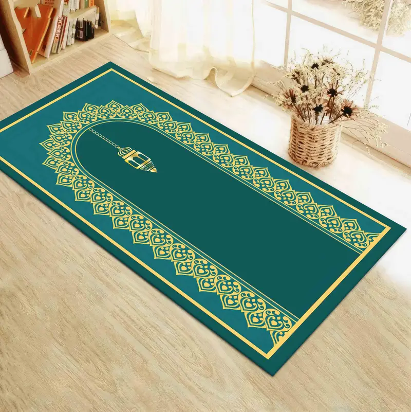 精神的な礼拝のための青と黄色のプリントの祈りの敷物