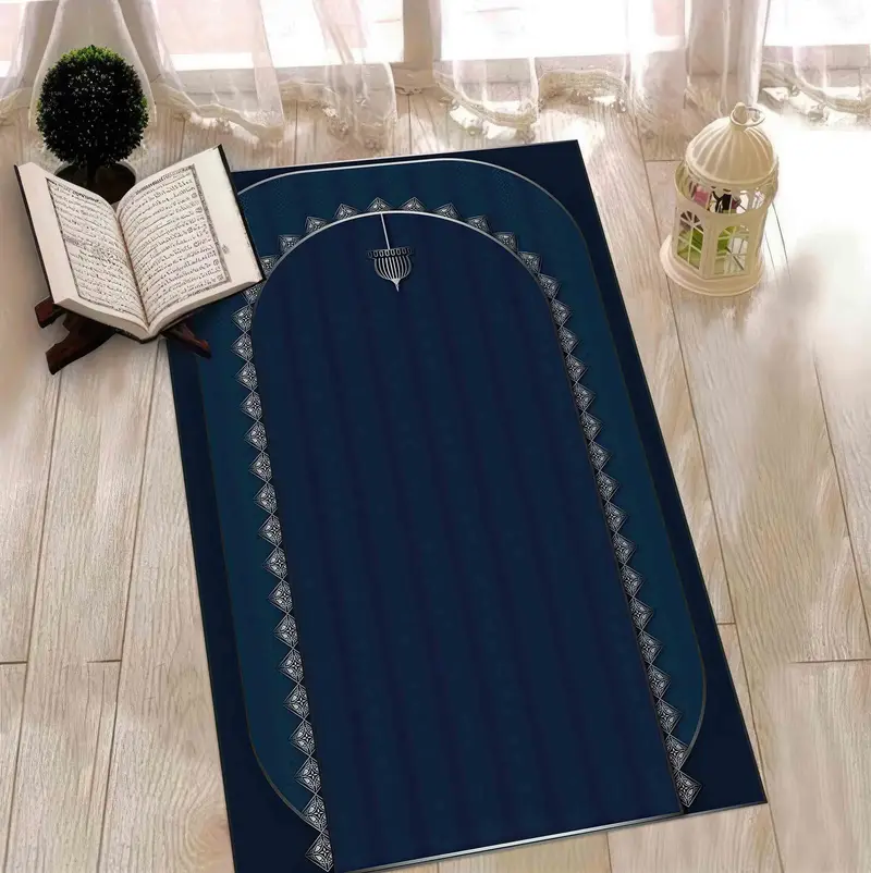 シルバーブルーのプリント祈り敷物: スピリチュアルと礼拝の必需品