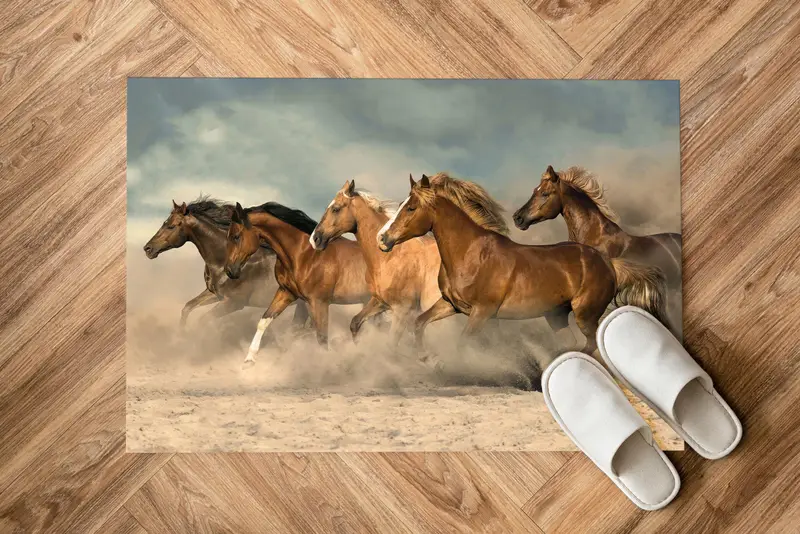 馬をテーマにしたプリントラグ - 農家や男の洞窟の装飾に最適