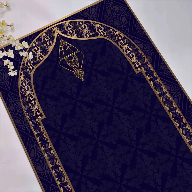 ネイビーブルーゴールドプリント祈り敷物 - 豪華でエレガントなデザイン