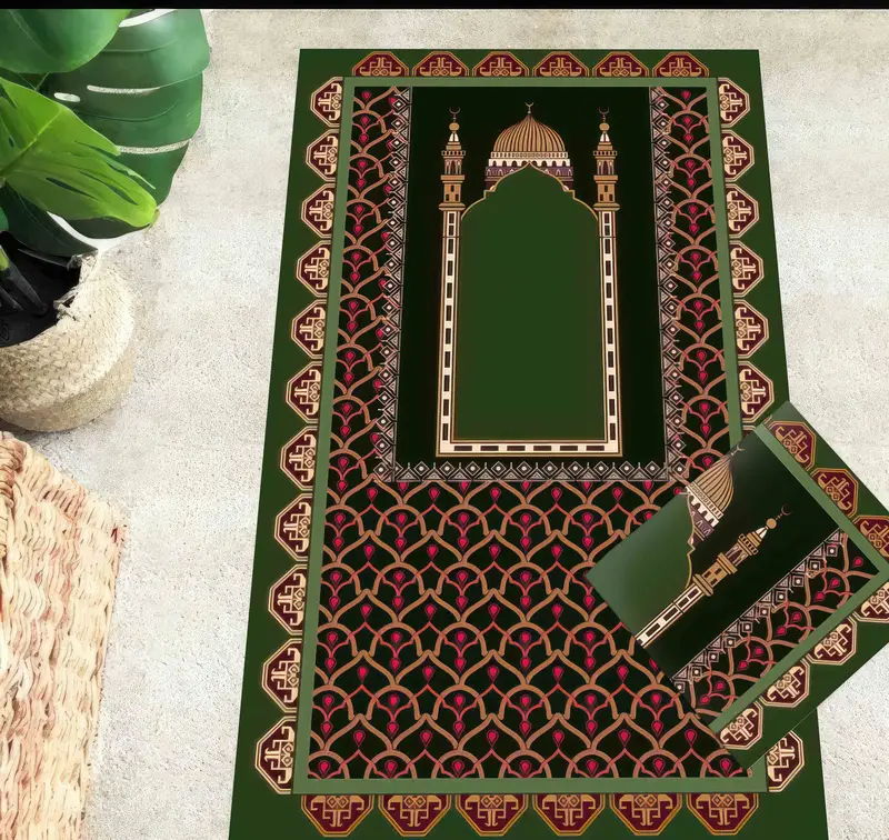 神聖な緑のプリントラグ:精神的な礼拝のためのオスマン帝国の祈りのマット