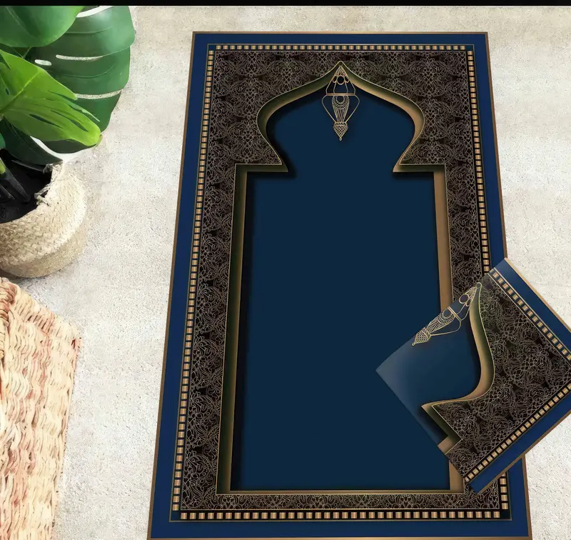 ネイビー ブルー ゴールド プリント オットマン 祈りの敷物 - 豪華な礼拝マット