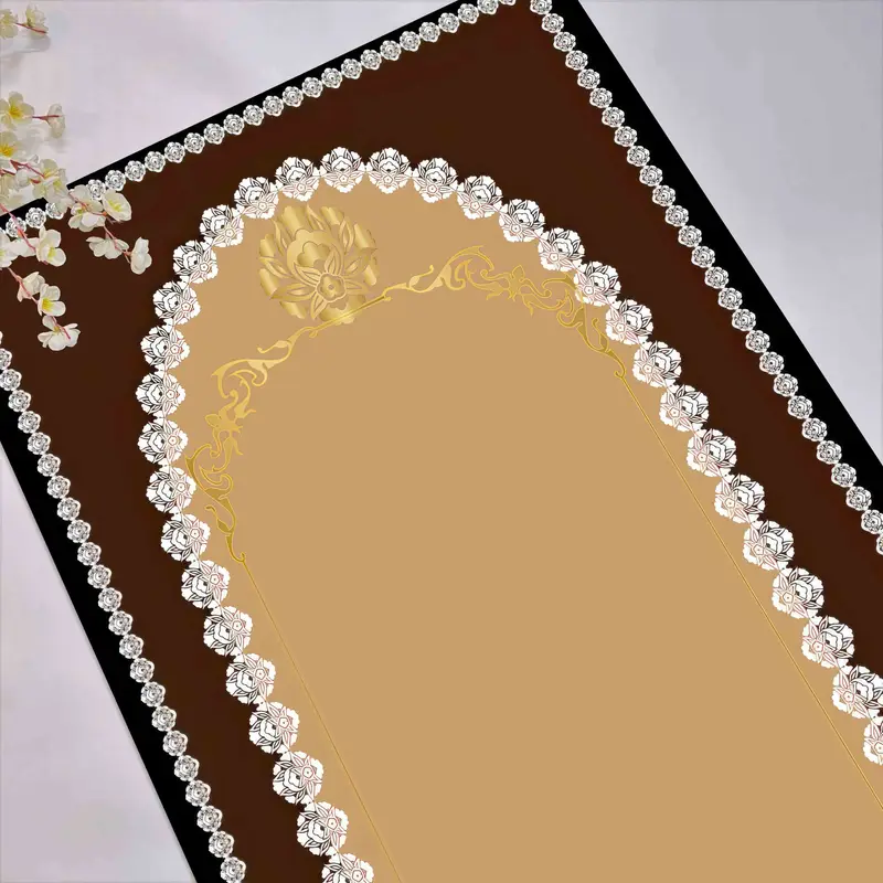 礼拝と祈りのためのブラウン & ゴールドのスピリチュアル プリント ラグ