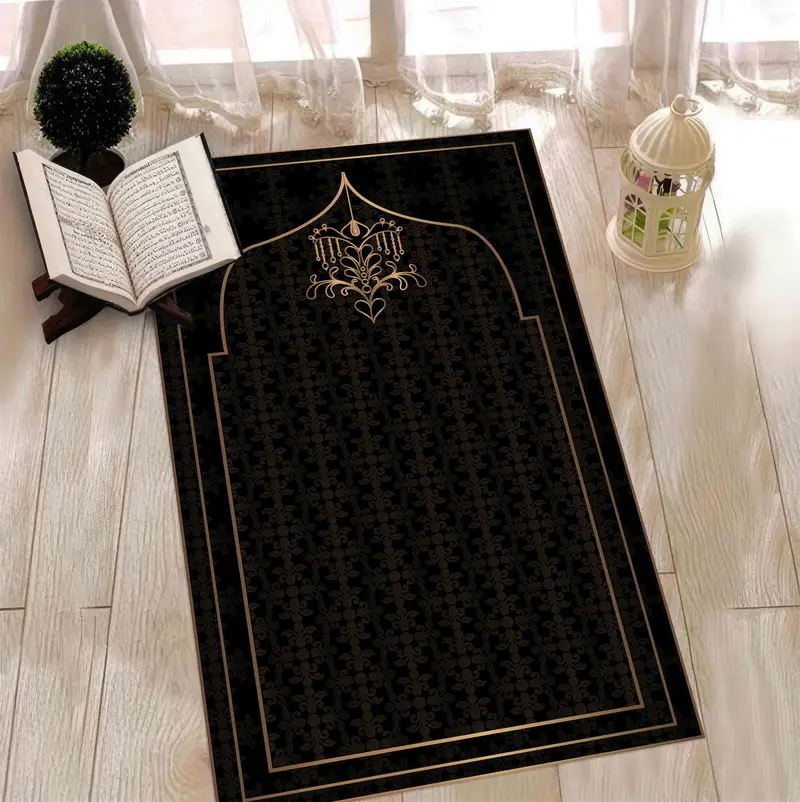 ゴールド & ブラック プリント 祈りの敷物: スピリチュアル、ラグジュアリー、礼拝