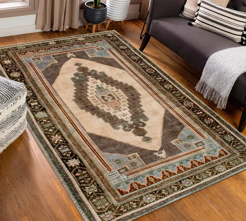 ヴィンテージメダリオンプリント: 豊かな幾何学模様のトルコ風ラグ