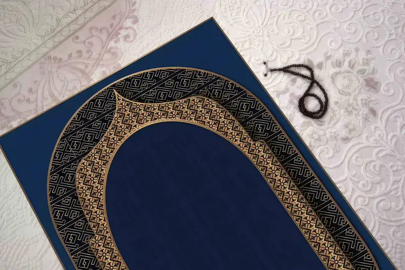 ネイビーブルーゴールドプリントラグ:スピリチュアルな礼拝のための豪華な祈りの敷物