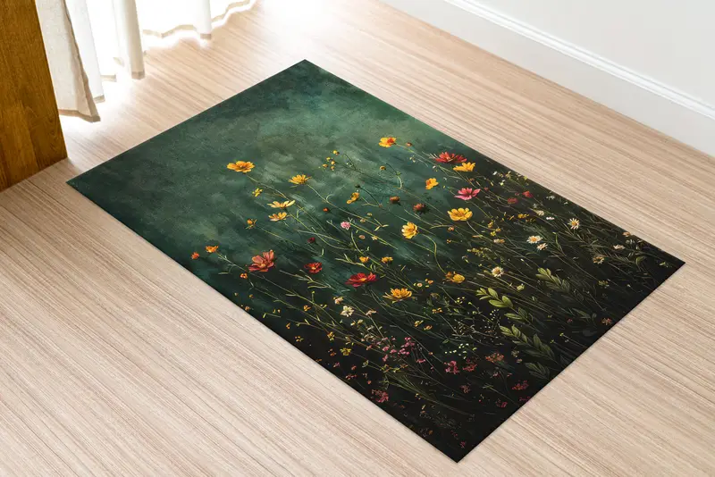フローラル ブルーム プリント ラグ - ヴィンテージ ボタニカル フィールド デザイン