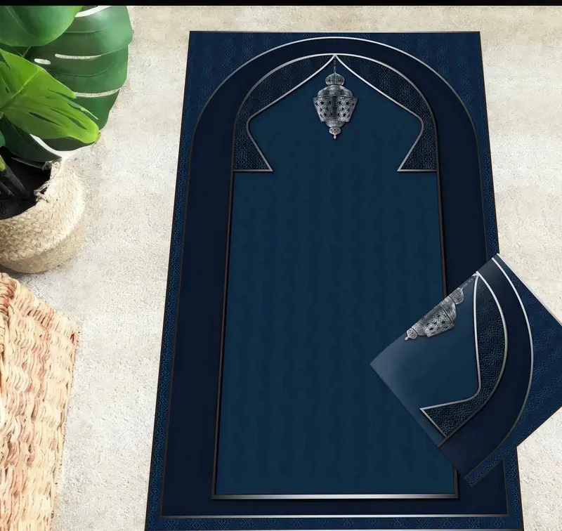 ネイビーブルー&シルバープリントの祈りの敷物:豪華なスピリチュアルな礼拝