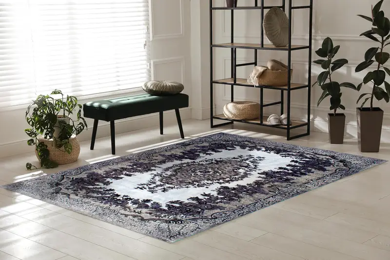 ヴィンテージメダリオンプリント: エスニック花柄のトルコ風ラグ