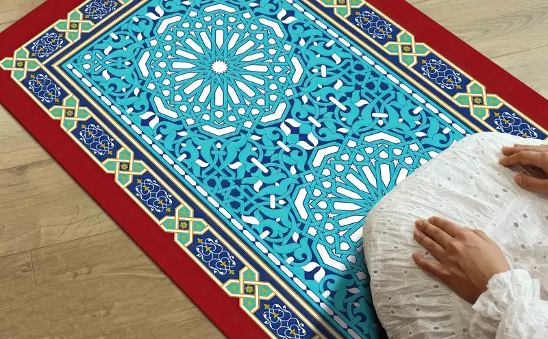 ブルー & レッド プリント 祈りの敷物: スピリチュアル & 宗教的なデザイン