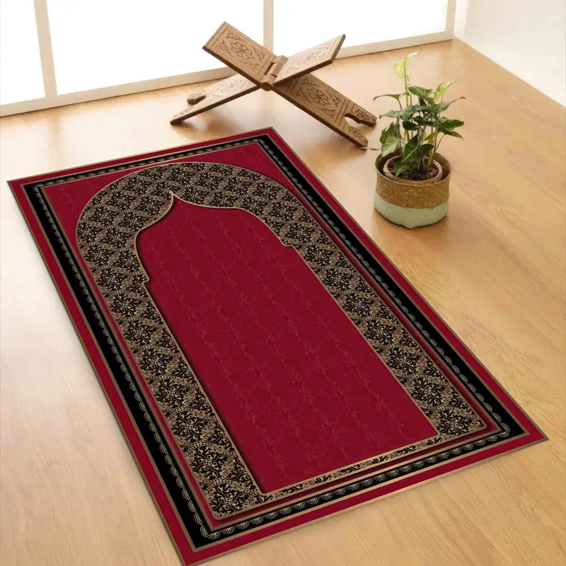 レッドゴールドの祈りプリントラグ:礼拝のためのスピリチュアルなエレガンス
