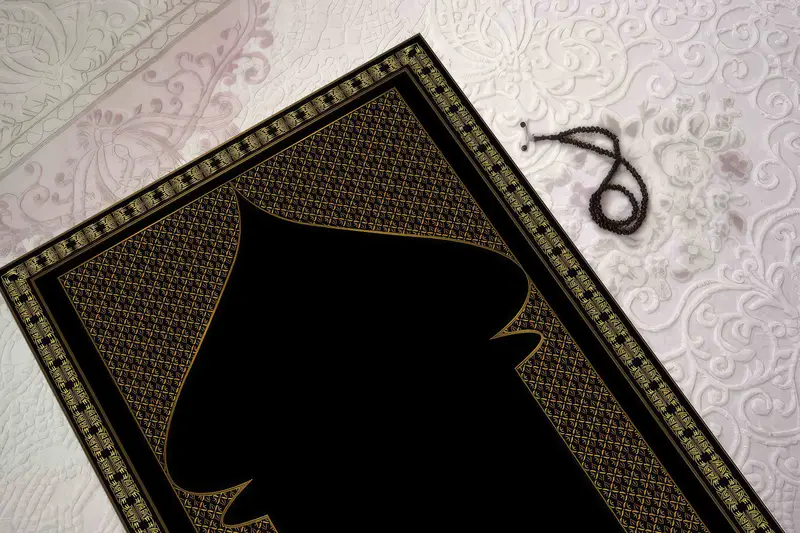 スピリチュアルな礼拝用のゴールドとブラックのプリント祈り敷物