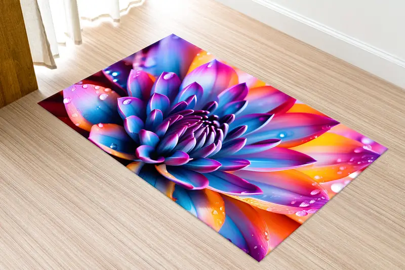 鮮やかな花柄プリントラグ、カラフルな花柄デザイン、心地よい生地
