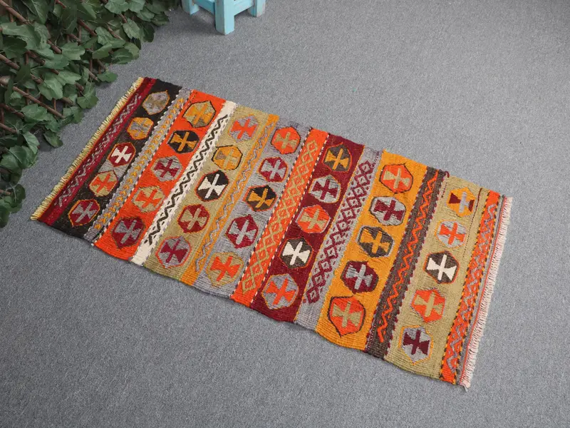 ヴィンテージトルコラグ 58x108cm キリムオレンジウールラグ