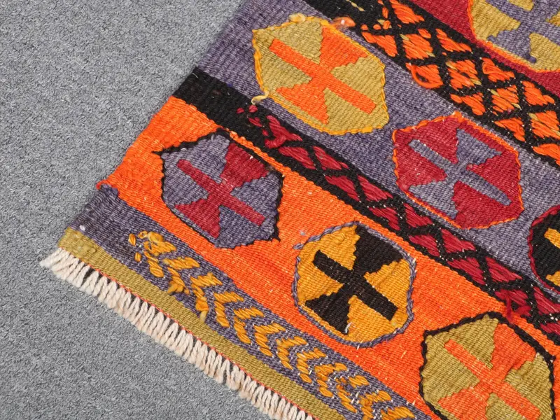 トルコヴィンテージラグ、2.1x3.37フィートキリムラグ、レッドイエローペルシャウールラグ