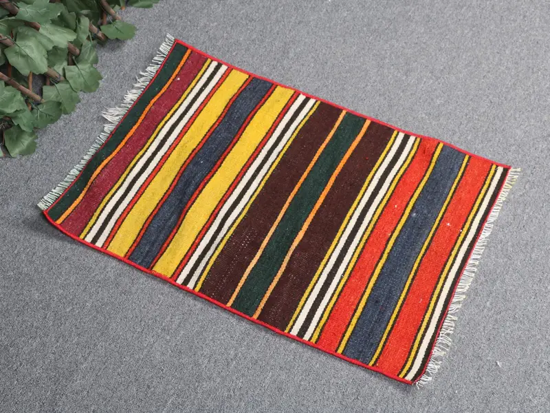 トルコキリム スモール ラグ 41x60cm ヴィンテージ レッド ボーダー ラグ