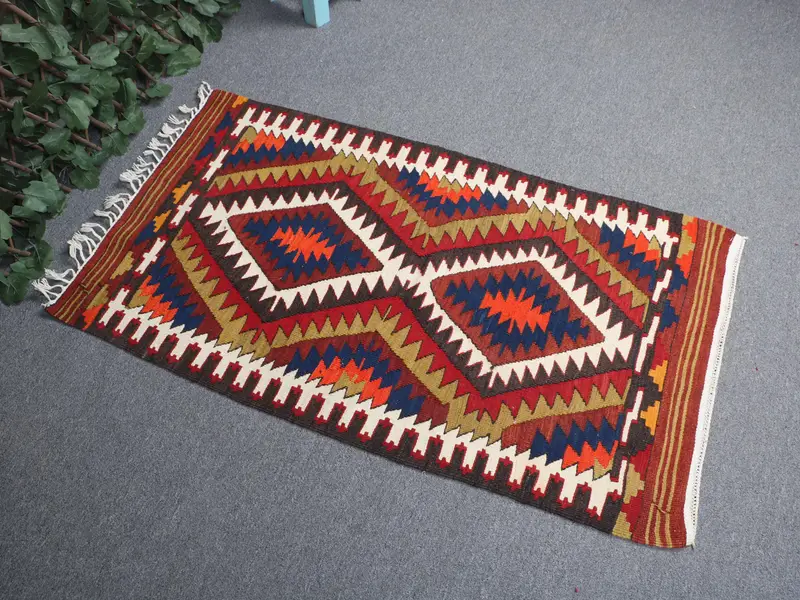 2.2x3.8フィートのトルコラグ、ヴィンテージスモールラグ、レッドチェックウールラグ