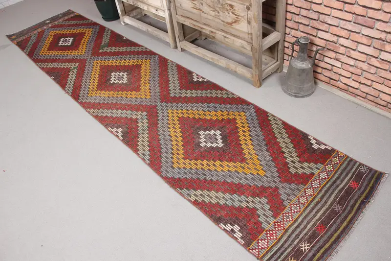 トルコ ヴィンテージ ラグ 71x344cm キリム レッド イエロー 花柄 ラグ